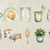 くすみグリーン朝ルーティンモチーフ水彩クリップアート(10点)
