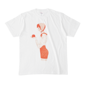 Tシャツ - XL - 白リンゴを持っている女の子です。 気に入ってくれたらうれしいです。 この商品はpixivFACTORYで作られた商品です。サンプル画像は完成イメージのため、実物と異なる場合があります。