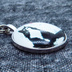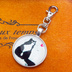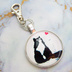 アンティークシルバー たたずむハチワレ猫のキーホルダー カボション 金具交換可 バッグチャーム ファスナーチャーム