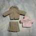 ジャケット+スカート+半袖ブラウスのセットです。 セットには、ピンクの半袖ブラウスを お付けしています。 «下記必ずご確認お願い致します» ご注文の前に、アイテムとカラーの間違いがないかご確認下さい。ご注文後のキャンセル、交換ができません。 オビツ11従来身長で着用できるよう作っておりますが、丈感がそれぞれ異なりますのでご了承下さい。 «注意事項» ハンドメイド作品ですので市販品のような完全さ、丈夫さはありませんのでご了承ください。 お着替えの際は、頭部と手足パーツを外し、関節を動かして着脱して下さい。 濃色は色移りの恐れがあります。ドールへの生地染料の移染防止のため、長時間の着用はお避け下さい。 布用接着剤およびほつれ止め液を使用しております。 布端のほつれが気になる場合は、引っ張らずにハサミでカットして下さい。 装飾部分にアイロンをあてないで下さい。生地にアイロンする場合は、当て布をして下さい。 スカートのウエストはゴムタイプです。 お洋服以外の撮影小物は付きません。