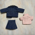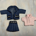 ジャケット+スカート+半袖ブラウスのセットです。 セットには、ピンクの半袖ブラウスを お付けしています。 «下記必ずご確認お願い致します» ご注文の前に、アイテムとカラーの間違いがないかご確認下さい。ご注文後のキャンセル、交換ができません。 オビツ11従来身長で着用できるよう作っておりますが、丈感がそれぞれ異なりますのでご了承下さい。 «注意事項» ハンドメイド作品ですので市販品のような完全さ、丈夫さはありませんのでご了承ください。 お着替えの際は、頭部と手足パーツを外し、関節を動かして着脱して下さい。 濃色は色移りの恐れがあります。ドールへの生地染料の移染防止のため、長時間の着用はお避け下さい。 布用接着剤およびほつれ止め液を使用しております。 布端のほつれが気になる場合は、引っ張らずにハサミでカットして下さい。 装飾部分にアイロンをあてないで下さい。生地にアイロンする場合は、当て布をして下さい。 スカートのウエストはゴムタイプです。 お洋服以外の撮影小物は付きません。