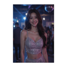 ポスター - B2この商品はpixivFACTORYで作られた商品です。サンプル画像は完成イメージのため、実物と異なる場合があります。 きらめくミラーボールの下で輝く、シルバーグリッターの装い。 軽やかな笑顔とネオンブルーの光が重なり、ポジティブで華やかなディスコの夜を演出します。 空間を明るく彩る、エネルギッシュなポスターアートです。