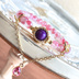 ✩︎⡱使用天然石・素材 ロードナイトシリカ/6.0mm(±0.5) フォスフォシデライト/8.0mm(±0.5) ピンクトパーズ/宝石ルース9.0×6.8mm(±0.5) その他パーツ/真鍮・ステンレス、一部18kgp ✩︎⡱内径 約15.5㎝ ✩︎⡱レイヴンイメージブレスレット ― アリーヴェデルチ 「アリーヴェデルチ」をテーマにした、春の空気を感じられるブレスレットです。ロードナイトシリカは花弁を閉じ込めたかのようなやわらかな雰囲気で、一粒ごとに異なる模様が可愛らしいです🌸 揺れる雫型のピンクトパーズは、舞い落ちる花びらのように軽やかで繊細です。中央には彼を思わせる深みのあるカラーを配置。春の柔らかさの中に、彼の魅力を忍ばせた特別の一本です✨ ✩︎⡱石の意味 − ロードナイトシリカ 愛情や思いやりを象徴するロードナイトに、水晶の持つ調和の要素が重なった石です。石言葉としては「愛情」「心の回復」「人との絆」などが挙げられ、気持ちの揺れをやさしく整えながら、自分にも相手にも素直でいられる状態へ導くとされています。過去の傷やすれ違いに対しても、無理に忘れるのではなく、少しずつ受け止めて前に進むための支えとなるような意味合いを持ち、人間関係を大切にしたいときや、心のバランスを取り戻したいときに寄り添ってくれるとされています。 − フォスフォシデライト パープルの色合いが特徴的で、「光を運ぶもの」とも呼ばれる石です。心の疲れやストレス、不安を優しく和らげ、感情の起伏を抑え、冷静さを取り戻す手助けをしてくれます。また、人との関わりの中で思いやりや配慮の気持ちを育む力もあり、ペットとの絆を深めたり、ペットロスの癒しにも役立つと言われています。持つ人や大切な存在にそっと光を届け、心を温かく包む優しい石です。 − ピンクトパーズ 愛や希望、前向きな気持ちを象徴する石で、「自己愛」「魅力」「幸福感」といった石言葉を持ちます。自分自身を大切にする気持ちを育て、内面の魅力ややさしさを自然に引き出してくれるとされており、無理に背伸びをするのではなく、自分らしさを受け入れて前向きに進む力を与えてくれる石です。また、気持ちを明るく整え、未来に対して希望を持ちたいときにもそっと背中を押してくれるような意味合いがあります。 ※意味はごく一部の説明になります。天然石には他にも多くの意味が込められており、残念ながら書ききれません…。どんな時、どんな人におすすめかの説明はネットでお調べいただくと詳しく掲載されておりますので、是非気になるお石を検索してみてください☺️