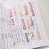 ※こちら自家印刷・自家製本バージョンです。 オフセットではありませんのでご注意を。 ※オフセットと中身はほぼ一緒です。 違う部分は、あとがきと、遊び紙の有無です。 こちらには遊び紙がついております。 ネットプリントで配信していたフリーペーパー 「カリグラフィー メモ」のフリーペーパーまとめです。 カリグラフィー(美しい手書き文字・洋書道)の好きを詰め込みました。 カリグラフィーのどの書体が好き、どんな本が好き、どんなペン、ペン先、インク、紙を使っているのか、どのお店が好き、など、ほぼ手描きで書いております。 使用しているカリグラフィーの書体は主にイタリック体。 たまにゴシックやカッパープレートも使っています。 ・インク見本 ・ペン先見本(パラレルペンなど万年筆、つけペン、マーカー) が多いです。 使用したインクは101色以上ありますので、 印刷するとこんな感じになりますよーというインク見本にもなっています。 詳しい内容は、写真の目次部分をご参照ください。 中綴じ/A5/28P(カラー24p)/遊び紙2種 自家印刷/自家製本 少量生産につき、なくなり次第終了となります。 ◆自家印刷の品質について 家庭用インクジェットプリンター(2017年発売機種)で印刷。 約20種類の紙をテスト印刷し、一番合う紙を選びました。 ◆発送について BOOTH安心パックのネコポス(クロネコヤマト・ポスト投函)を利用しての発送です。 お互いに匿名で発送受け取りができ、 もしもの時の補償があります。