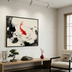 朱色の鯉と墨の波紋