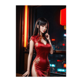 ポスター - B2この商品はpixivFACTORYで作られた商品です。サンプル画像は完成イメージのため、実物と異なる場合があります。 鮮やかな紅色のチャイナドレスをまとった女性が、都会の夜景を背景に佇むポスター作品。 光るネオンと夜の街の雰囲気が、ドレスの華やかさと女性の魅力をより引き立てます。 クラシックなチャイナドレスとモダンな都市の組み合わせが印象的な一枚です。 空間を華やかに彩るインテリアポスターとして楽しめます。