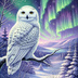 静寂のオーロラ – 枝に止まる白フクロウ | デジタルアート