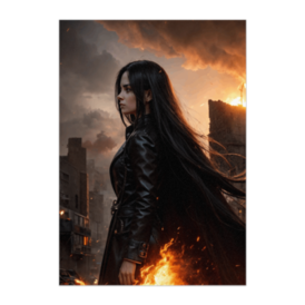 ポスター - B2この商品はpixivFACTORYで作られた商品です。サンプル画像は完成イメージのため、実物と異なる場合があります。 崩壊した都市と炎の中に立つ 孤高のヒロイン。 燃え上がる火花と夕焼けの空が 映画のクライマックスのような ドラマチックなシーンを作り出します。 終末世界を舞台にした シネマティックポスター作品です。