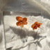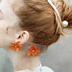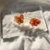no.297 再販 ブリックオレンジの紫陽花ピアス オレンジ 本物のお花 アジサイ パール ステンレス ピアス
