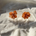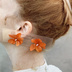 no.297  再販  ブリックオレンジの紫陽花ピアス  オレンジ   本物のお花   アジサイ  パール  ステンレス ピアス