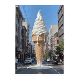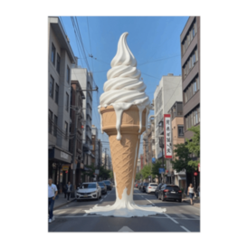 ポスター - B2この商品はpixivFACTORYで作られた商品です。サンプル画像は完成イメージのため、実物と異なる場合があります。 街の中心にそびえる巨大なソフトクリーム。 溶け出したクリームが道路に流れる幻想的な光景は、 現実とメルヘンが交差する不思議な世界を作り出します。 ポップで夢のような雰囲気を楽しめる、 シュールファンタジーアートです。