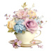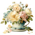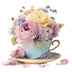 【商用利用可】フラワーティーカップ(水彩花柄ティーカップ)クリップアート18点セット|高解像度・透過PNG|印刷OK|コラージュ・ジャンクジャーナル素材|即ダウンロード