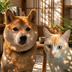 【無料配布】スマホ壁紙:和室の仲良しコンビ(柴犬&猫)