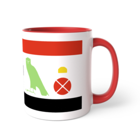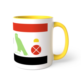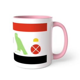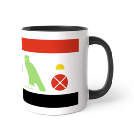 ツートンカラーマグカップ - 直径 8.2cm / 高さ 9.5cm(5)古代エジプトのヒエログリフのシルエットで「エジプトの猫」と書いたツートンマグです。 各ヒエログリフの色はツートンマグのカラバリに合うようにカラバリと同じ色にしました。 上下の赤と黒の縞はエジプト国旗を意識してます。国旗の真ん中にヒエログリフを持ってきたんです。 ただヒエログリフの猫は本来猫のヒエログリフ単体では表記されませんでした。デザイン上ここは太陽のヒエログリフでもよく使われた判じ絵的表記にしました。 「ミウ(猫)エン(of)ケメト(エジプト)」と読みます。 シルエットなのでわかりづらいですが猫のしっぽは長く巻いてるのでこの位置に来てます。 この商品はpixivFACTORYで作られた商品です。サンプル画像は完成イメージのため、実物と異なる場合があります。