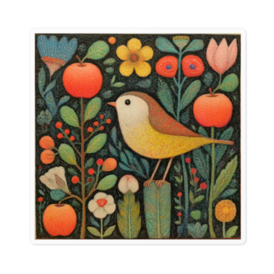 【ノスタルジック】小鳥とりんご - 10cmアートステッカー