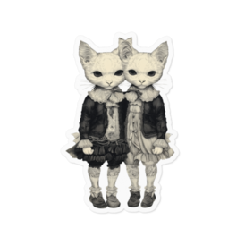 【ゴシック】双子猫のヴィンテージ・インクアート - 10cmステッカー
