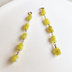 小粒ながらも遊色が美しいエチオピアンプレシャスオパールを、丁寧に連ねたチャームです。 お好みの金具と合わせてご注文ください。 金具がご不要の場合は、チャームのみでご注文いただくことも可能です。 【14kgf】ピアス・イヤリング・イヤカフ https://booth.pm/ja/items/7940434 【サージカルステンレス】ピアス・イヤリング https://booth.pm/ja/items/7940511 【サージカルステンレス/ゴールド】ピアス・イヤリング https://booth.pm/ja/items/7940553 【樹脂】ピアス・ノンホールピアス https://booth.pm/ja/items/7940599 エチオピアンプレシャスオパールのロンデルを豪華に15粒、3粒ずつ分けて連ねました。 これ一つでも主役になりますし、大きめのチャームと合わせて脇役としても華やかに決まります。 こちらのカラーは、ミモザのようなイエロー。 遊色は控えめとなりますが、表情を明るく映えさせてくれます。 最後にお色み確認用の近接写真を掲載しています。 ご確認ください。 使用パーツ ●エチオピアンプレシャスオパール ●サージカルステンレス(ゴールド 作り替え ●可 おことわり ●可能な限り丁寧に制作しておりますが、素人のハンドメイド品です。市販品ほどの強度・完成度はございません。ご了承の上、優しく扱っていただけますと幸いです。 ●14kgf、サージカルステンレスは、ともに金属アレルギーが出にくいとされる素材ですが、すべての方にそれが保証されるという訳ではありません。異常を感じられた場合は、すぐ、ご着用をお止めください。 ●天然石を用いているため、作品はすべて一点ものです。いずれも完全に同一デザインでの再販は難しいこと、あらかじめご了承くださいませ。