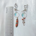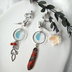 山鳥毛をイメージした耳飾りです。 左右非対称のデザインです。 金具部分を除き全長は約8cm、金具を含めた片耳の重さは約5gです。 メタルパーツ、メタルチャーム、プラ板、天然石コーラルを主に使用しています。