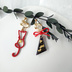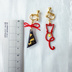 南泉一文字をイメージした耳飾りです。 左右非対称のデザインです。 金具部分を除き全長は約4cmと5cm、金具を含めた片耳の重さは約3gです。 レジン、箔、メタルパーツ、メタルチャームを主に使用しています。 レジンはしっかりと硬化しているので安全ですが、念のためレジンアレルギーのかたはご注意ください。