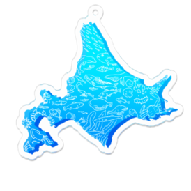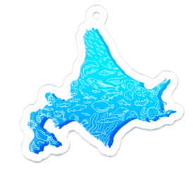 アクリルキーホルダー - 50 x 50 (mm)北海道の形の中に近海の海の生き物たちを詰め込んだデサインのキーホルダーです。ナスカンのついた画像はイメージで、実際の大きさ比率は変わる場合があります。 この商品はpixivFACTORYで作られた商品です。サンプル画像は完成イメージのため、実物と異なる場合があります。