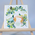 手描きイラスト オリジナル 「シロツメクサの冠の上で」 原画 創作 うたもち 秋田犬 1/4色紙サイズ 透明水彩