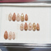 こちらは【M】SDM.DD.MDD.SD等におすすめサイズのネイルチップです。 ◆MDDハンドにも少し長めでお付けいただけます。 ◆SDハンドにも少し短めでお付けいただけます。 ※画像にてイメージをご確認ください ◆内容に予備のチップが3本付きます。(左から親指・中指・小指のサイズになります※中指は人差し指薬指に使うことも可能ですお好みで削って下さい) ◆今回も全て1点ものになります。 ※今後似たようなデザインの再版などする場合はございます。 ※ドール着用写真はイメージです。実際のお品物は1枚目画像デザインです。 ※システム上個々でお求めいただきますとお会計ごとに送料がかかってしまいます。 ※こちらで確認できていないハンドにも装着可能ですがサイズ表をご確認頂き近いサイズをお選びください。 -AbendVers-のドールサイズネイルチップは、ネイリストが経験と技術を生かし 強度面、素材など吟味し一つ一つ手作業で作っております。(一つずつ検品しておりますが手作業で制作をしております、細かな繊維などが入ってしまう場合もございます) ・お手持ちのハンドにお付けいただけます ※ハンドの形状によっては(握り手、ピースなど)お着けいただけない指がございます ☆ご注文前に 素材・配送方法・サイズ・ご使用方法・注意事項 をご確認くださいませ。 ※下記にも詳細をご確認いただけますが、詳しいお取り付け説明はお品物と同封させていただきます。 【素材】 ポリマータイプの光硬化型アクリル樹脂(合成樹脂 爪化粧料用を 使用) 【配送方法】 こちらの商品は あんしんBOOTHパックネコポス ¥370(全国一律)で配送させていただきます。 【梱包】 ネイルチップは1セットずつ ケースにお入れし、破損がないよう十分に注意し発送させていただきます。 【ドールサイズのネイルチップとは】 名称通り ・ハンドパーツを含まないネイルチップのみの販売となります。 ・お手持ちのハンドパーツにご自身で張り付けていただく必要があります。 ・ネイルチップの接着剤として水性木工用ボンドをご利用いただけば剥がすことが可能ですので、同じハンドパーツに違うネイルチップを張り替えていただくことが可能です。 ※無理に剥がすと(ハンドペイントをされているハンドは)ペイントが剥がれる可能性もあります。 また、サイズ・貼り付け位置をそろえていただければネイルチップをシャッフルしてオリジナルの組み合わせで着けていただく事も可能です。 【ネイルチップのサイズについて】 ネイルチップをご購入いただく前にお手持ちのハンドパーツの爪のサイズをご確認下さい 爪の造形はハンドパーツの種類ごとに微妙に違います。 ※画像のサイズ表を目安に、お手持ちのハンドパーツに合うものを(表記以外の方もサイズが合えばお着けいただけます)お選び下さい。 ※全て手作業で製作しています。サイズ表の記載はおよそです。 ※サイズ表のサイズはネイルチップ自体のサイズです。 ※デザインによって(カットスタイルや厚み)長さは少し変わる場合がございます。 ・ハンドパーツにより爪の造形に個体差があります。サイズが微妙に合わない場合は、チップを削ってサイズ調節してください。 ・ハンドパーツの指の形状によってはすべてのネイルチップをつけられない場合があります。(握り手やピースハンド等)ハンドパーツの指の重なりかたなどで着けられない場合があります。 ※アートの種類によりネイルチップの厚みは異なります、アートが指に干渉してしまう場合は、人差し指、中指、薬指などシャッフルしていただけます 干渉しにくいお指にお付けくださいませ。 【貼り付け方】 ・細かいパーツになりますので、張り付け作業などは トレーの上などで作業いただくと紛失防止になります。 ≪小さなお子さまやペットのいるご家庭では特にご注意ください≫ ・接着は、水性木工用ボンド(剥がすことが可能です)か、固定の場合は水性でない接着剤などをご利用ください。乾くとクリアになるものをおすすめします!! (揮発性接着剤は白く曇る可能性があります、お避けください) ・接着剤は爪楊枝などの先に少量とり、ハンドパーツの爪部分中心に置いていただくか薄く伸ばし、ネイルチップを張り付けてください。 ※Gr女の子の場合、(水性ボンドなどご使用の場合)少し多めにボンドを着けていただくとしっかり固定できます。 【接着後のお取り扱いについてのご注意】 ネイルチップを接着したハンドパーツのお取り扱いには十分にご注意下さい。 ・ネイルチップを引っ掻けたりハンドパーツに衝撃をあたえたりすると破損・紛失に繋がる可能性があります。 破損・紛失防止に、ドールを動かしたりドレスの着替え等を行うときはハンドパーツにビニール袋をはめていただくか、ハンドパーツを外して下さい。 ・[水性木工用ボンド]をご利用いただいた場合、ハンドパーツからネイルチップを剥がした時に、ハンドパーツ側に接着剤が残ってしまった時は、湿らせたティッシ