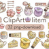 【32種類】ふんわり水彩風*春のお花とティータイムのクリップアートセットご覧いただきありがとうございます! 春の訪れを感じる桜やミモザ、心癒やされるラベンダーとマーガレットをテーマにした、大人可愛いクリップアートの詰め合わせです 。手描きのような優しいタッチで、コスメやスイーツ、ティータイムのアイテムを丁寧に描きました。 背景透過のPNG形式なので、配置するだけで簡単におしゃれなデザインが完成します 。 🌸 セット内容(合計32点) 桜 (Sakura):ティーカップ、ケーキ、ヘアピンなど ミモザ (Mimosa):コンパクト、リップバーム、ティーポット、ハンドクリームなど ラベンダー (Lavender):リップバーム、チーク、ラテ、ハンドケアアイテムなど マーガレット (Daisy):ティーセット、保湿クリーム、ケーキなど ✨ 商品の特徴高画質・背景透過PNG:背景が透明なので、写真やイラストの上に重ねてすぐに使えます 。 統一感のあるデザイン:同じトーンで作成しているため、組み合わせて使ってもまとまりが出ます。 商用利用OK:SNS投稿、ブログのアイキャッチ、バナー作成、ハンドメイドの台紙デザインなど、幅広くお使いいただけます。 📁 ファイル形式形式:PNG(背景透過) 内容:全32ファイル(zip形式でまとめています)