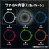 〇構成ファイル3種 ・直線 ・円_外側 ・円_内側 〇カラー6種 ・ホワイト ・ブラック ・ブルー ・レッド ・グリーン ・オレンジ