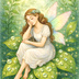 露に濡れた葉の上で眠る妖精 - デジタルアート