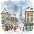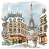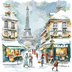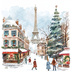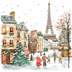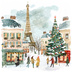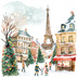 【商用利用可】パリのクリスマス(水彩パリ冬の街並み)クリップアート20点セット|高解像度JPG|ロマンティック風景|コラージュ・ジャンクジャーナル素材|即ダウンロード