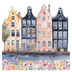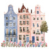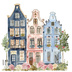 【商用利用可】アムステルダムの家(水彩オランダ街並み)クリップアート20点セット|高解像度・透過PNG|ヨーロッパ風カラフルハウス|コラージュ・ジャンクジャーナル素材|即ダウンロード