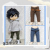 ねんどろいどどーる、オビツ11で着用できるサイズです。 ベルトはフロント部分のみに付いています。 足首のパーツを外して着用してください。 ※ウエストの位置を下にずらしてはかせるのがおススメです。
