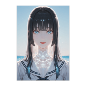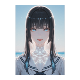 ポスター - B2この商品はpixivFACTORYで作られた商品です。サンプル画像は完成イメージのため、実物と異なる場合があります。 透き通るような海と空を背景に、静かにこちらを見つめる少女の一瞬を描いた作品です。 やわらかな光と繊細な表情が重なり、清涼感と透明感を感じられる一枚に仕上がっています。 お部屋に飾ることで、夏の爽やかな空気と穏やかな時間を感じられるポスターです。