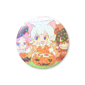 ホログラム缶バッジ - 76mmオリジナル作品「新世界のアリス」のヤヨイ、ギン、アリスのハロウィン缶バッジです この商品はpixivFACTORYで作られた商品です。サンプル画像は完成イメージのため、実物と異なる場合があります。