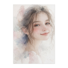 ポスター - B2この商品はpixivFACTORYで作られた商品です。サンプル画像は完成イメージのため、実物と異なる場合があります。 穏やかな微笑みが印象的な水彩ポートレート。 ふんわりと広がる色彩と、 やわらかな表情が心を和ませます。 空間に明るさと優しさを添える、 ナチュラルで親しみやすいアート作品です。