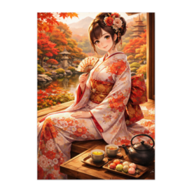 ポスター - B2鮮やかな紅葉が窓の外を彩る、穏やかな秋の一日。 美しい着物に身を包んだ女性が、縁側でそっと一息つく瞬間を切り取りました。 この一枚をお部屋に飾るだけで、空間がぐっと華やかで落ち着いた雰囲気に変わります。 高精細な印刷により、着物の繊細な柄や紅葉の色の深み、女性の柔らかな表情まで、イラストの魅力を細部まで再現。 日々の喧騒を忘れさせてくれるような、癒やしの時間をお届けします。 美しい日本の秋を、あなたのお部屋で感じてみませんか? 【製品情報】 ・サイズ:A1/A2/B1/B2/B3の5種類から、お部屋のスペースに合わせてお選びいただけます。 ・用紙:高品質ポスター用紙(光沢を抑えたマットな質感が、イラストの雰囲気にマッチします) ・印刷:高精細インクジェット印刷 ※商品にフレームは付属しておりません。お好みの額に入れてお楽しみください。
