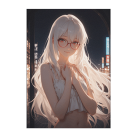 ポスター - B2この商品はpixivFACTORYで作られた商品です。サンプル画像は完成イメージのため、実物と異なる場合があります。 夜の街灯に照らされながら、 静かに佇む白髪の少女。 柔らかな光と風に揺れる髪が、 落ち着いた美しさと透明感を引き立てます。 日常と幻想の間を感じさせる、 しっとりとした雰囲気のアートポスターです。