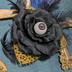 難あり。黒眼球薔薇と青い孔雀コサージュ。
