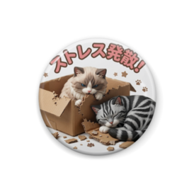 缶バッジ - 25mm一生懸命段ボールを噛んでストレス発散する子と、その横でマイペースに眠る子。対照的な二匹の姿が、見るたびにあなたの心をホッと軽くしてくれる。。。かもしれません。 この商品はpixivFACTORYで作られた商品です。サンプル画像は完成イメージのため、実物と異なる場合があります。