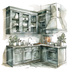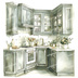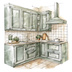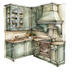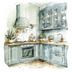 【商用利用可】ヨーロッパ風キッチンコーナー(水彩インテリア)クリップアート20点セット|高解像度・透過PNG|ナチュラルキッチン・コラージュ・ジャンクジャーナル素材|即ダウンロード