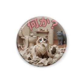 缶バッジ - 25mm散らかったお部屋と、堂々とした猫ちゃんのミスマッチが癖になる?? この商品はpixivFACTORYで作られた商品です。サンプル画像は完成イメージのため、実物と異なる場合があります。