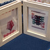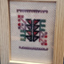 パレスチナ刺繍の2枚フレーム こちらは、左がカタツムリ(ナーブルス)と杉の木(ガザ)のモチーフを刺繍したもので、右は真ん中にヘブロンの鍵と横のEに似た模様が家(ヘブロン)のモチーフで、家の上下にあしらったのが花(ガラリヤ)、上下に使ったのが全地域でよく使われている老人の歯という面白いモチーフです。普通の 歯 というモチーフが全体にタイル状にクロスステッチが施されているのに対して、老人の歯はちょっとすかすかになっているところが、パレスチナの人達のユーモアが垣間見えます。 また、このヘブロンの鍵、家というモチーフは彼らの故郷への想いを想像して応用させていただきました。パレスチナに想いを馳せて。 サイズ 片側フレーム約8.1cm×10.5cm / 厚み 一枚1.3cm