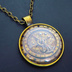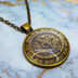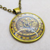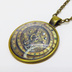 アンティークゴールド 羅針盤と歯車の描かれたスチームパンク風カボションペンダントネックレス TYPE-B 長さ調整可
