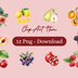 ボタニカル水彩画・フルーツクリップアート 10種セット【背景透過PNG】