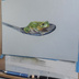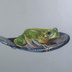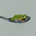 色鉛筆で蛙とスプーンを描きました。紙はグレーの紙を使用