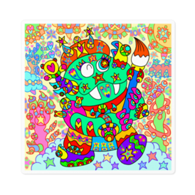 ステッカー - 160 x 160 (mm)(1)この商品はpixivFACTORYで作られた商品です。サンプル画像は完成イメージのため、実物と異なる場合があります。 今回は、僕どりほぷの分身とも言える竜を描きました!この竜は自分で自由に思いついたままに絵を描くのが大好きです!この龍が持つ神秘的な魅力が、カラフルで華やかなアートの中で咲き誇ります!この作品では、竜のアーティストが幸せで満ちた一瞬を切り取っています。色とりどりの筆使いが、見る者の心をわしづかみにし、作品制作を楽しむ生き生きとした表現が楽しめます。こちらの作品は、先に発表した「アーティストの竜」の背景ありのバージョンになります。