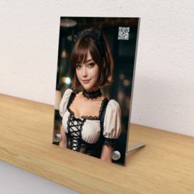 アクリルフォトパネル - 縦100 × 148mm「……おかえりなさい、ご主人様。今夜は、私の特別な選曲と……いつもより少しだけ大胆な私で、あなたを癒やします。」 大好評の【聴くアクスタ】シリーズ通算第7弾は、完璧な仕事ぶりで信頼の厚いメイド・**雫(SHIZUKU)**のファースト・エディション。 今作の舞台は、営業終了後の静まり返ったカフェ。ご主人様のために、彼女が「秘密の努力」で用意した、一夜限りのプライベート・セッションをお届けします。 🎹 プレミアム・トータルタイム:13分32秒 雫が贈る、ピアノベースのフュージョン・ジャズと癒やしの没入型プログラム。 💿 収録内容 Opening Voice (0:00〜) 「少しきつめの衣装ですが、喜んでいただきたくて頑張りました。……お気に召しましたか?」 普段の清楚な制服を脱ぎ捨て、あなたを驚かせるために背伸びをした雫の「一生懸命な誘惑」から始まります。 Main BGM:Midnight Piano Fusion -Shizuku Select- 彼女自身が「ご主人様の心を癒やすため」に選んだ、ピアノベースの落ち着いたフュージョン・ジャズ。 心地よいリズムが、一日の疲れを優しく解きほぐしていきます。 Ending Voice (〜13:32) 「ご主人様の心が軽くなれば、私も幸せです。」 ジャズの余韻の中で、彼女の深い献身と愛しさが溢れ出すエンディング。最後まで耳を傾けてくれたあなただけに届ける、心からのメッセージです。 ✨ こだわりポイント 小悪魔的な「綻び(ほころび)」: カチューシャに添えられた小さなデビルホーンと、艶やかなボルドーのリップ。 完璧主義な彼女が見せる、あなただけの前でしか見せない「小悪魔な裏の顔」をビジュアル化しました。 黒サテン×レースの勝負服: 彼女が「頑張って選んだ」というコルセット風の衣装は、光沢のあるサテンと繊細なレース使いが特徴。 視線を外せないほどの大胆さと、彼女らしい清潔感が同居しています。 究極のリラックス体験: 13分32秒にわたる上質なジャズと彼女の優しい声は、眠りにつく前のナイトルーティンや、誰にも邪魔されたくない読書タイムのBGMに最適です。 📦 商品仕様・ご注意 音声視聴方法: アクリルパネル本体の**【右上】**にある二次元コードをスキャンしてください。(ストリーミング形式) サイズ: 縦148 × 横100mm(ポストカードサイズ) ⚠️ 注意事項: 本商品は完成イメージのため、実物と色味が若干異なる場合があります。 雫が用意した「真夜中の癒やし」で、あなたの心が軽くなるまで、隣にいさせてくれませんか?