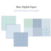 ブルー系デジタルペーパー16種類セット|花柄・ボタニカル|背景素材・ラッピング・招待状に