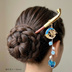 九尾狐と蒼彼岸花のキセルかんざし 和ゴシック 鬼灯 チェコビーズ