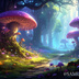 光るキノコの森|ファンタジー背景素材(5000px・16:9)